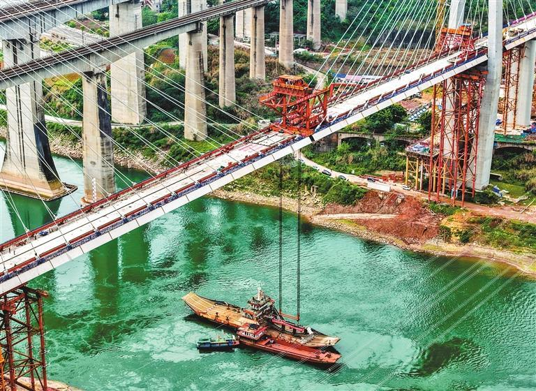 Uma imagem aérea mostra o canteiro de obras da Ponte Jingkou sobre o rio Jialing, um elemento fundamental de uma nova ferrovia de alta velocidade que ligará Chengdu, na província de Sichuan, no sudoeste da China, à cidade vizinha de Chongqing. A ponte foi concluída com sucesso ontem, superando um importante obstáculo para a inauguração oficial da linha de 292 quilômetros. Como eixo estruturante da rede ferroviária de alta velocidade da China, esta linha é a primeira projetada para velocidades de até 400 km/h e deverá tornar-se a ferrovia de alta velocidade mais rápida do mundo.