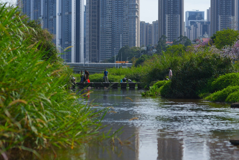 O corredor ecológico ao longo do rio foi projetado para ser um parque público.