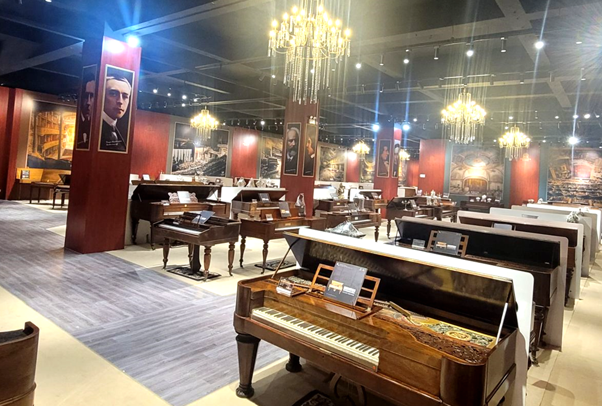 Com uma área de 2.000 metros quadrados, o Museu do Piano exibe uma ampla variedade histórica de pianos, dos antigos aos modernos.